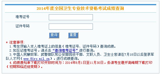 點擊進入 2014山東衛(wèi)生專業(yè)技術資格考試成績查詢入口