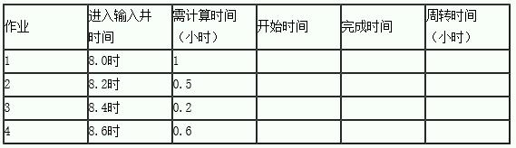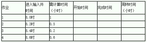 (1)采用先來先服務算法時,計算各作業(yè)的周轉(zhuǎn)時間。