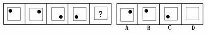 (答案:B。黑點(diǎn)在正方形中順時(shí)針移動(dòng)。在第5個(gè)圖形中,應(yīng)該正好移動(dòng)到左上角。)