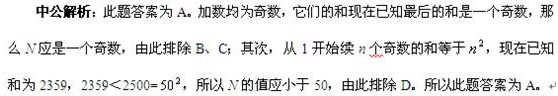 【例題1】在連續(xù)奇數(shù)1,3,…,205,207中選取N個不同數(shù),使得它們的和為2359,那么N的值是( )。
