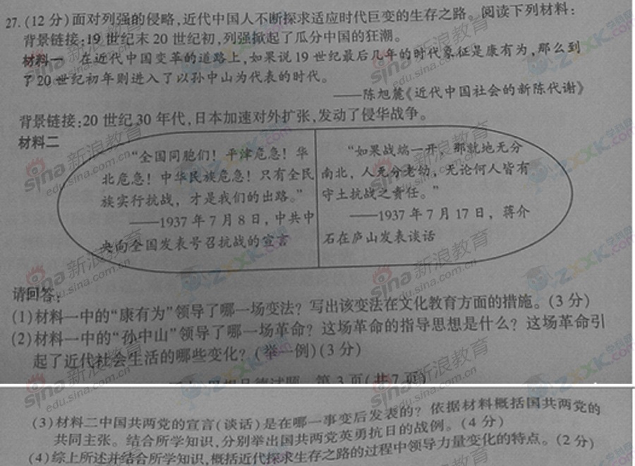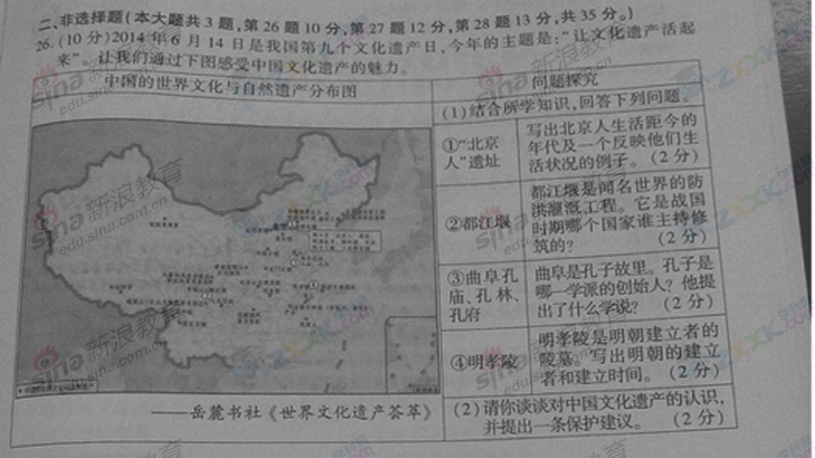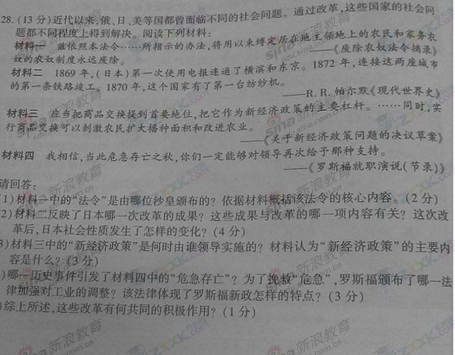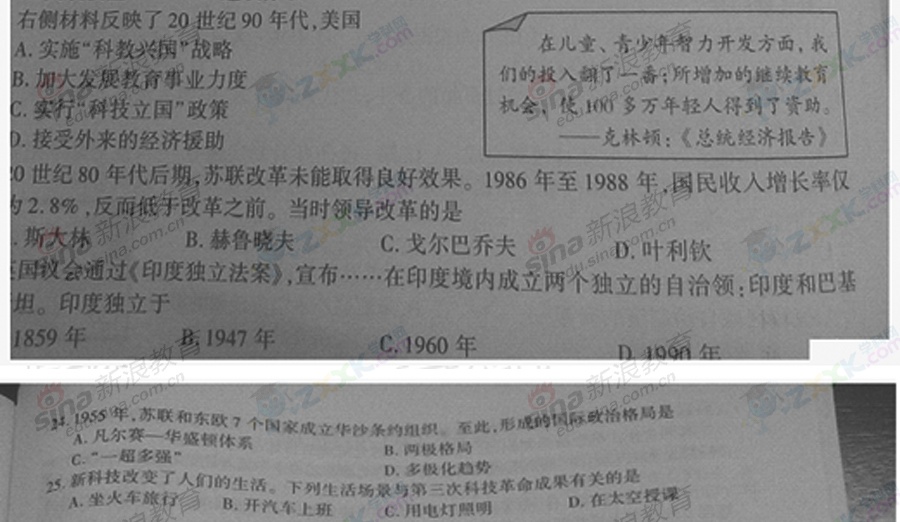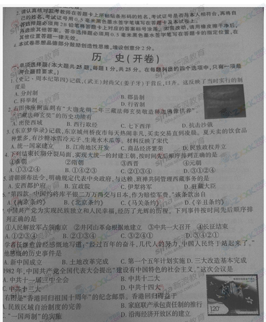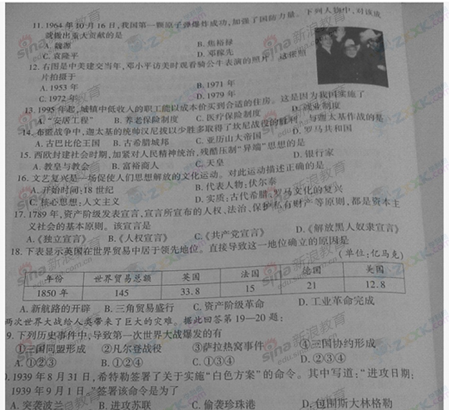 2014江蘇南京中考?xì)v史試題(新浪版)
