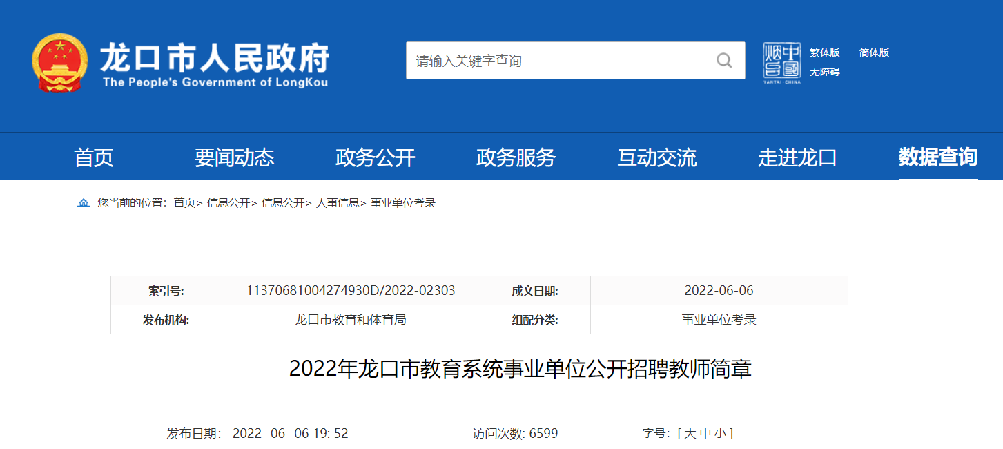 2022山東煙臺龍口市教育系統(tǒng)事業(yè)單位招聘教師報(bào)名入口