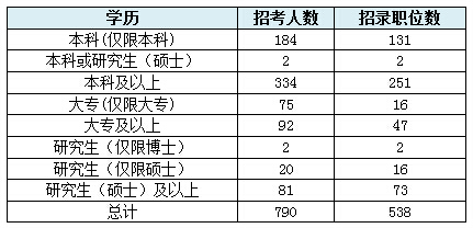 本次考試河南職位當(dāng)中有多個(gè)部門的多個(gè)職位要求是大專及以上,所以本次招考學(xué)歷門檻要求比較高。各個(gè)學(xué)歷層次具體招錄人數(shù)如下: