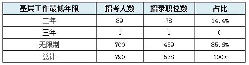 本次考試河南的職位當(dāng)中只有河南地震局的一個(gè)職位要求三年基層工作經(jīng)驗(yàn),其余的都是要求兩年工作經(jīng)驗(yàn)或者不限制,要求兩年工作經(jīng)驗(yàn)的職位數(shù)為總數(shù)的14.4%。所以對廣大考生來說是一個(gè)好消息,請有意向和符合條件的考生踴躍報(bào)考,如果您在報(bào)考和備考過程當(dāng)中遇到任何問題,都可以與河南中公教育客服聯(lián)系,電話:0371-86010911。
