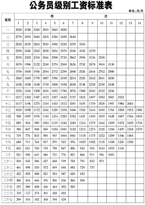 公務員工資職務與職級并行框架方案(見議供參考采納) 中央深改組第七次會議審議了《關于縣以下機關建立公務員職務與職級并行制度的意見》。這意味著,基層公務員將“不當官也能享受官員待遇”。這是一次基層公務員工資結構調(diào)整的配套改革,為他們拆除了“天化板”,開辟了職級晉升通道,以利于調(diào)動他們工作的積極性。這項改革確實讓基層公務員歡欣鼓舞。如何搞好“頂層設計”,使美好的愿景變成現(xiàn)實?網(wǎng)上熙熙攘攘,眾說紛紜。