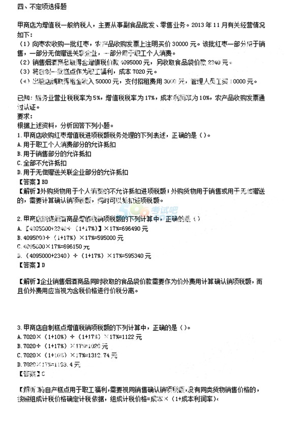 【資料二】甲企業(yè)為一般納稅人,主要從事副食品批發(fā)、零售業(yè)務(wù);2013年8月發(fā)生如下業(yè)務(wù):