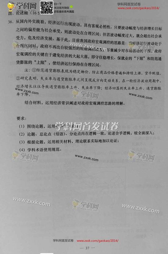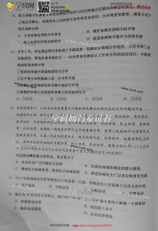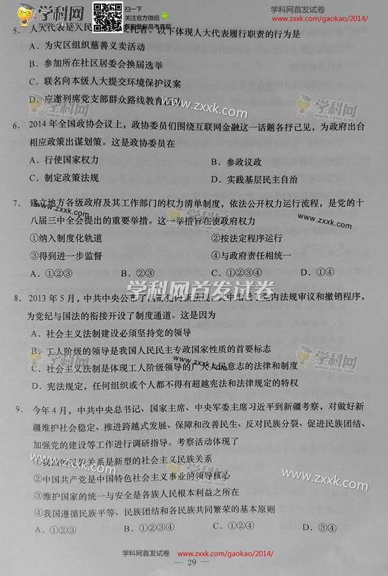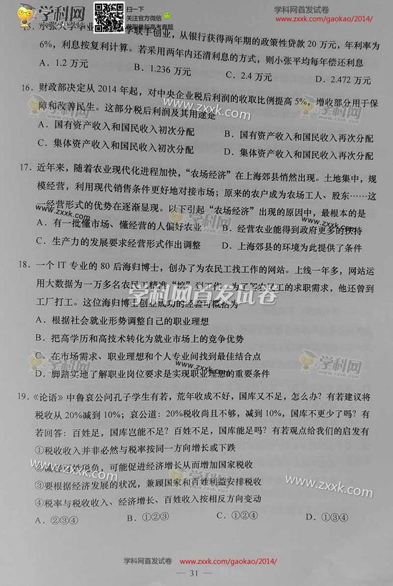 2014年上海高考政治試卷及答案