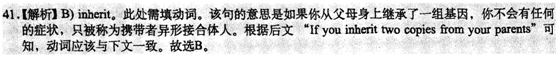 "It's a genetic disorder and if you (41)______one copy of the gene from one of your parents, you don't have any symptoms and you're called a (42)______or a heterozygote individual. If you inherit two copies from your parents, then you have sickle cell anemia, which is quite(43)______and lethal in countries where there is no treatment (44) ______," he said