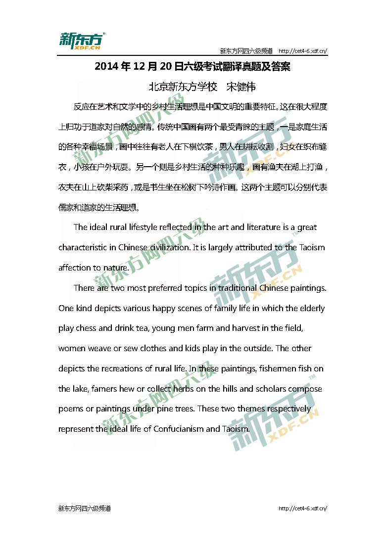 新東方宋建偉:2014年12月20日英語(yǔ)六級(jí)翻譯真題及答案