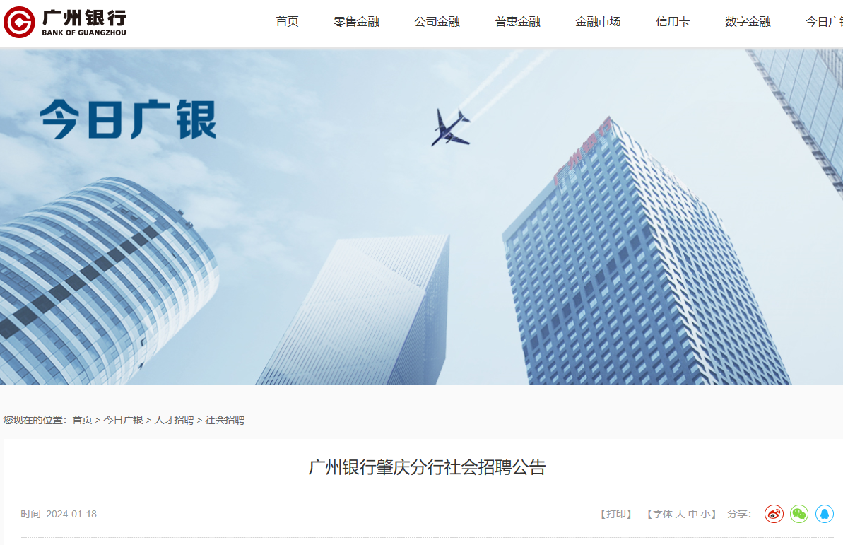 2024廣州銀行廣東肇慶分行社會招聘公告已發(fā)布,聯(lián)系地址:肇慶市端州區(qū)星湖大道9號恒裕海灣A6幢首二層廣州銀行肇慶分行綜合管理部。現(xiàn)將招聘公告原文發(fā)布如下: