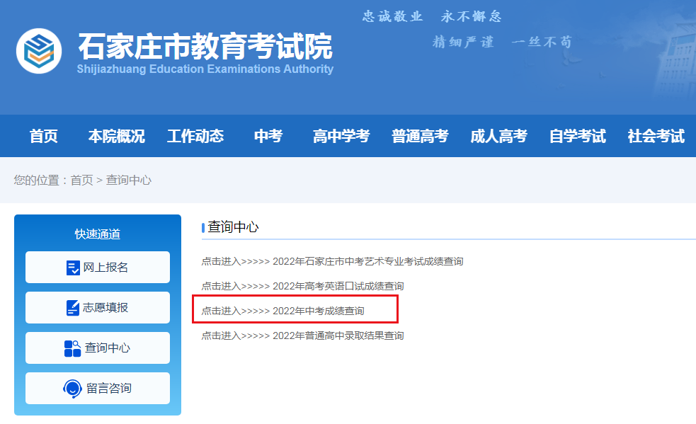 從石家莊市教育考試院發(fā)布的《河北石家莊2022年高中階段學(xué)校招生錄取工作實施方案》和《河北石家莊2022年高中階段學(xué)校招生錄取工作實施方案解讀》,2022年河北石家莊中考成績查詢網(wǎng)站登錄入口已公布,具體詳情如下: