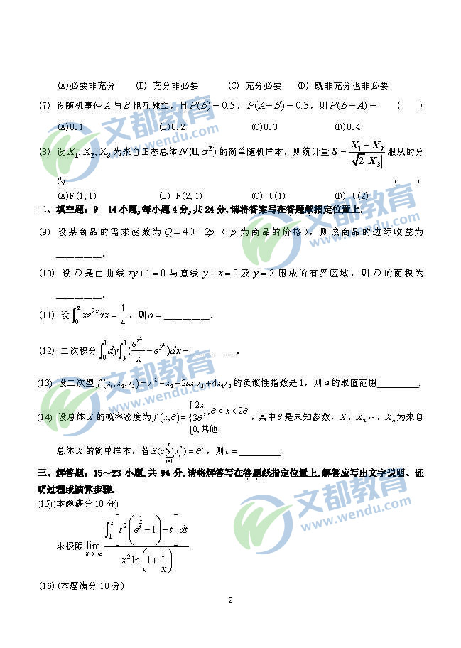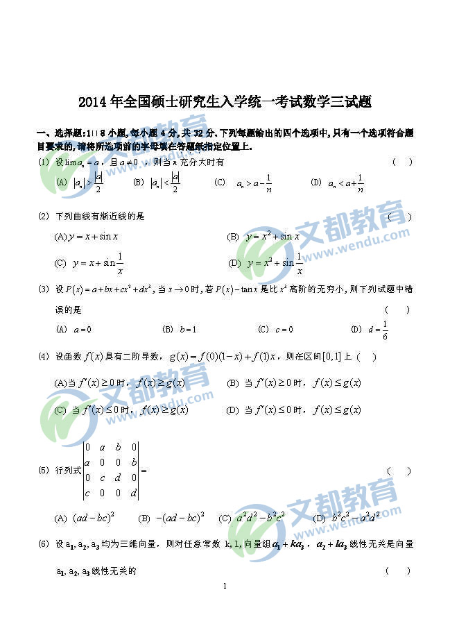 2014年考研真題:數(shù)學(xué)三