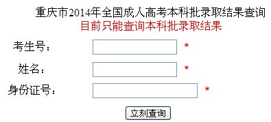 點擊進入:2014年重慶成人高考錄取結果查詢入口(本科批)