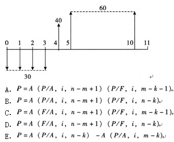 4.某建設(shè)項(xiàng)目現(xiàn)金流量圖中,基準(zhǔn)折現(xiàn)率為i,則該項(xiàng)目在k時(shí)點(diǎn)的現(xiàn)值P的表達(dá)式正確的有( )。