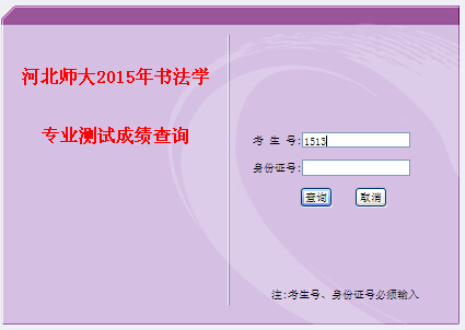 河北師范大學(xué)2015年藝考成績(jī)查詢?nèi)肟冢〞▽W(xué)專業(yè))已開通,考生可點(diǎn)擊以下鏈接進(jìn)行成績(jī)查詢,盡請(qǐng)關(guān)注!