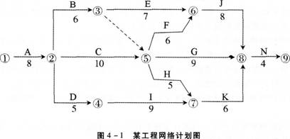 8、某建筑公司與某單位于5月10日簽訂了實(shí)驗(yàn)樓承建合同,合同約定由于甲方責(zé)任造成總工期延誤1d,甲方應(yīng)向乙方補(bǔ)償1萬元;若乙方延誤總工期1d應(yīng)扣除乙方工程款1萬元;施工中實(shí)際工程量超過計(jì)劃工程量10%以上時(shí)超過部分按原單價(jià)的90%計(jì)算;雙方對施工進(jìn)度網(wǎng)絡(luò)計(jì)劃確認(rèn)(見圖4—1)。