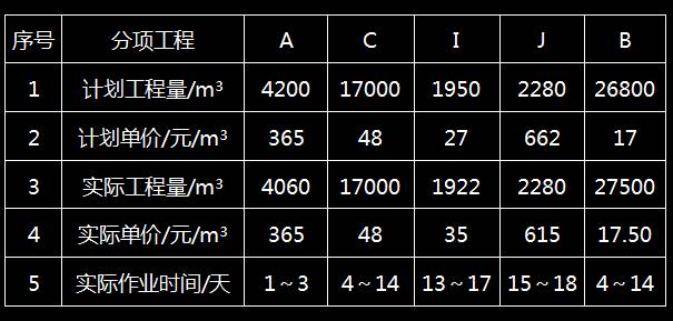 表5.1 部分分項(xiàng)工程計(jì)劃和實(shí)際工程量、單價(jià)、作業(yè)時(shí)間表