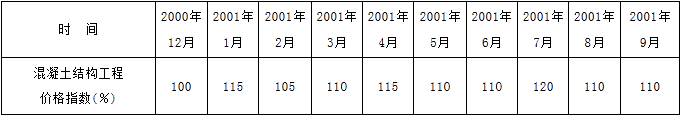 價(jià)格指數(shù)進(jìn)行調(diào)整,項(xiàng)目實(shí)施期間各月的混凝土結(jié)構(gòu)工程價(jià)格指數(shù)如表1—5—2所示。表1一5—2項(xiàng)目實(shí)施期間各月的混凝土結(jié)構(gòu)工程價(jià)格指數(shù)