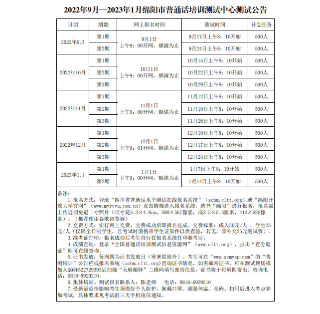 原文標題:2022年9月-2023年1月綿陽市普通話培訓測試中心測試公告