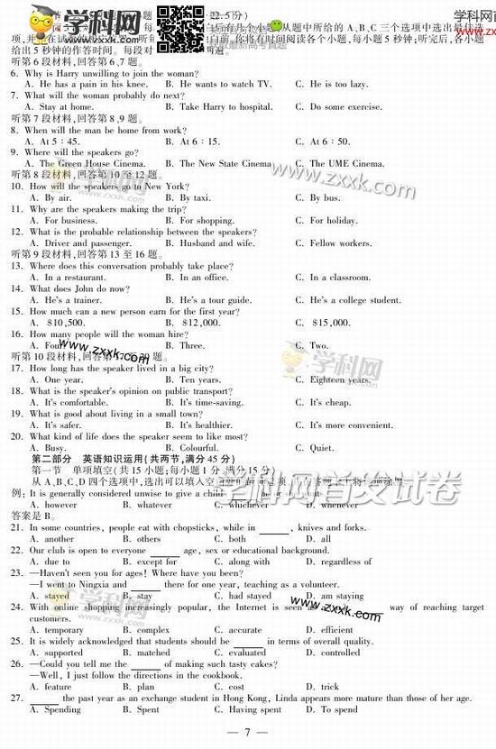 福建2014年高考英語試題