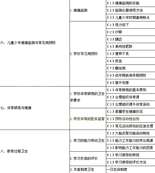 《學(xué)校/兒童少年衛(wèi)生學(xué)》考試大綱 | ||