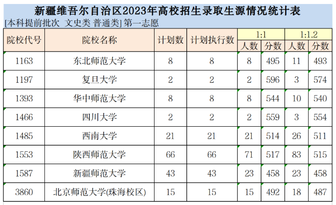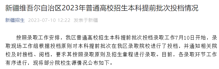 高考頻道從新疆招生公眾號(hào)了解到,2023年新疆高考招生本科提前批次投檔情況已公布,具體如下: