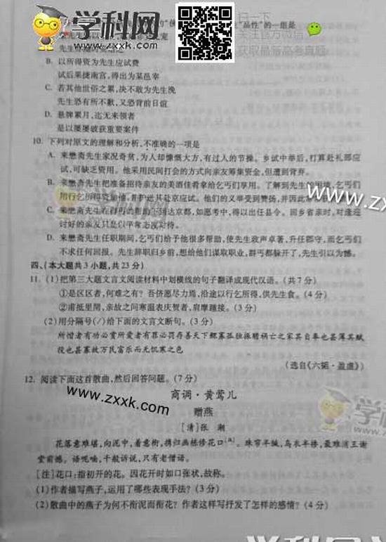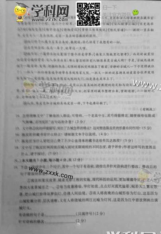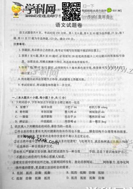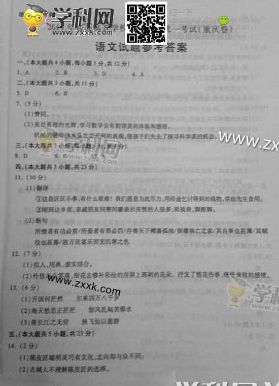 重慶2014年高考語文試題及答案