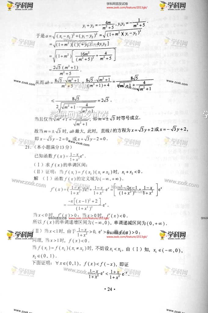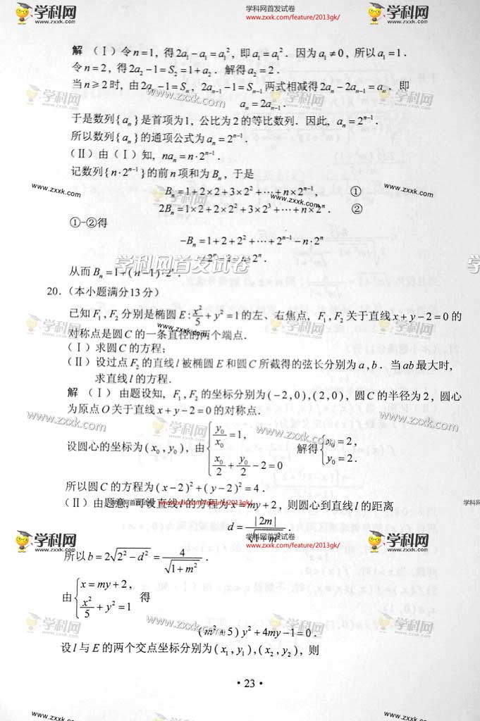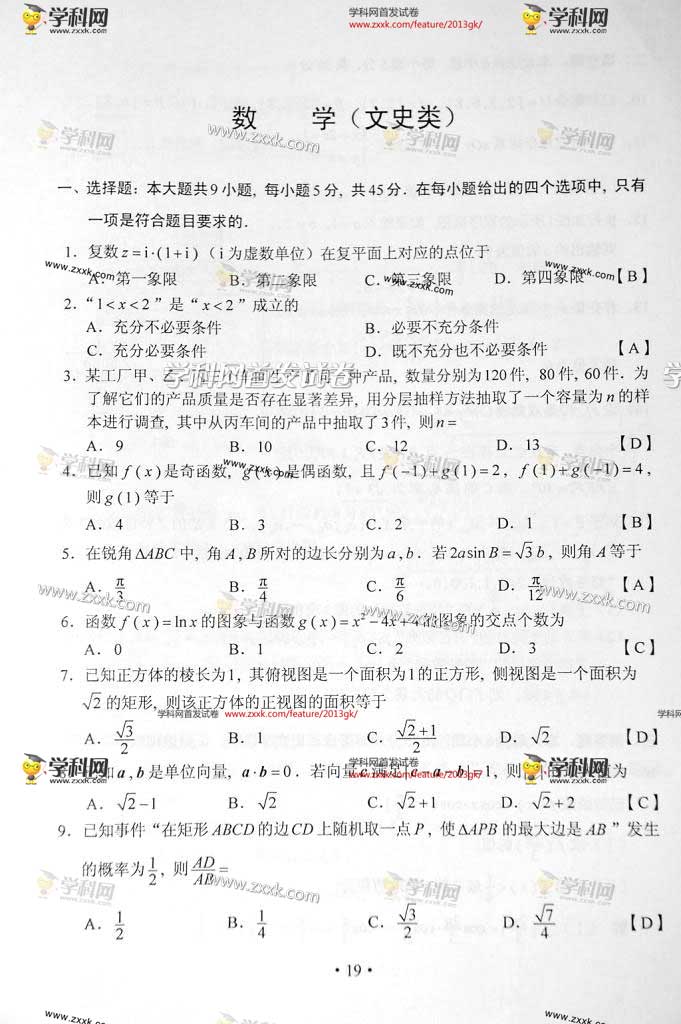 2013年湖南高考數(shù)學(xué)試題答案(文史類)