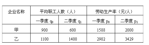 甲乙兩企業(yè)一季度和二季度的平均勞動生產(chǎn)率分別是( ?。?。