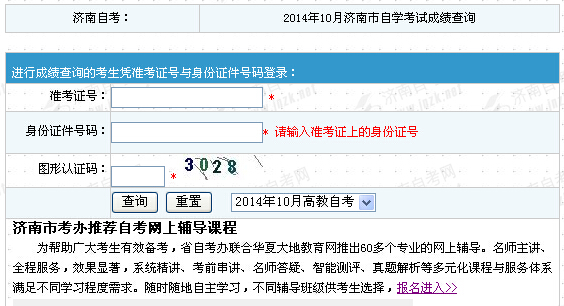 點擊進(jìn)入:山東濟(jì)南2014年10月自考成績查詢?nèi)肟?/FONT>