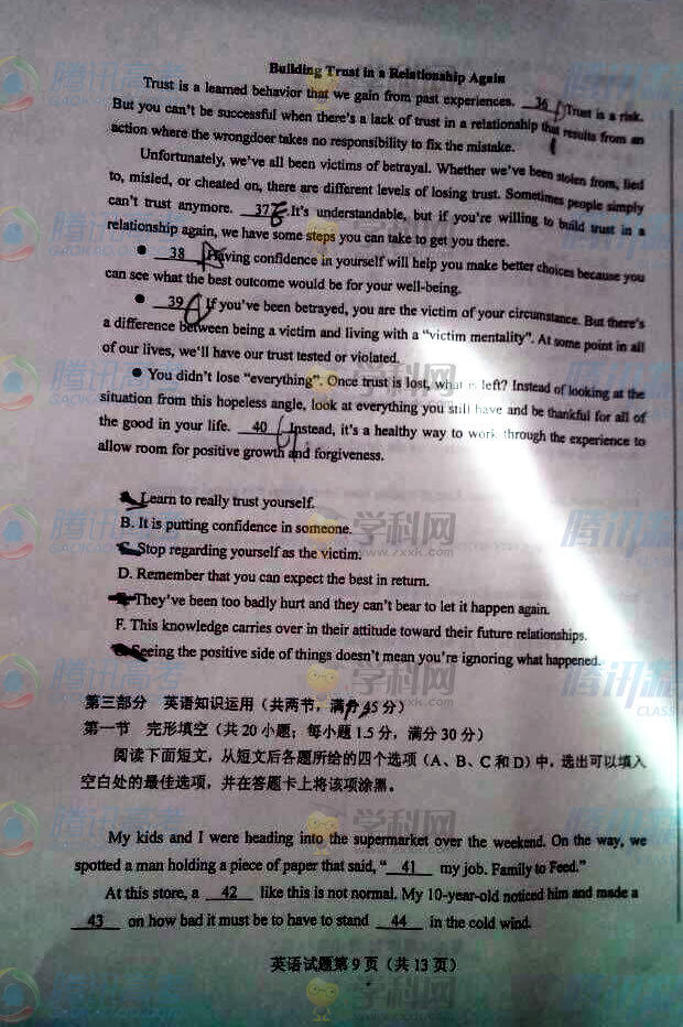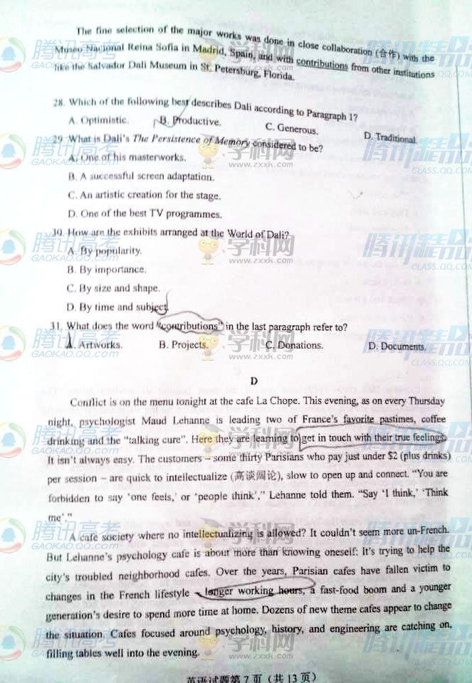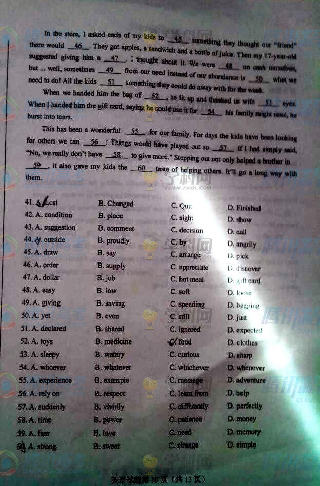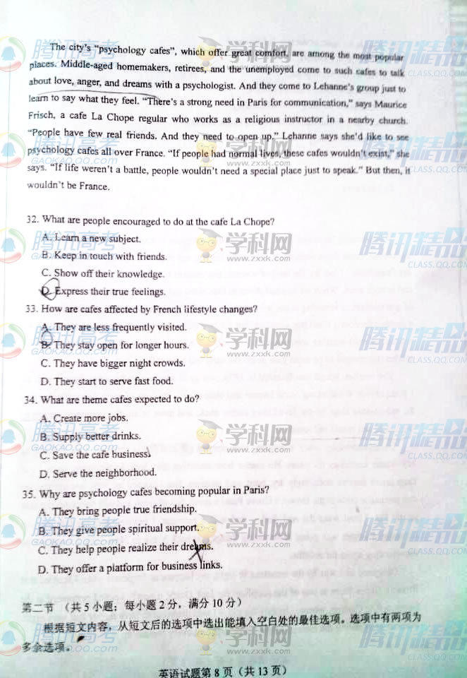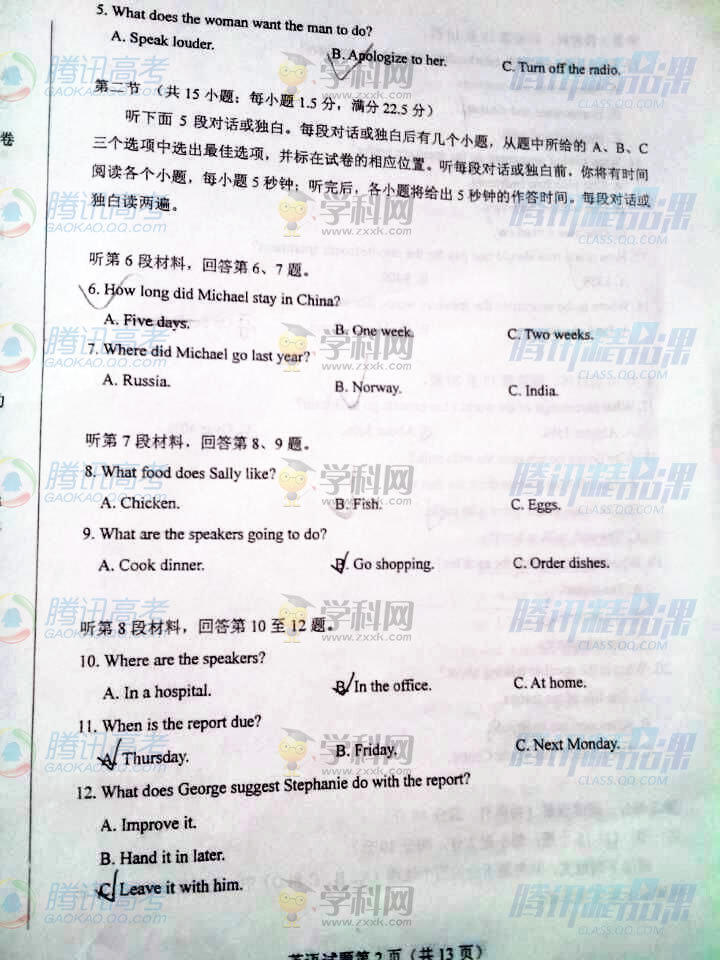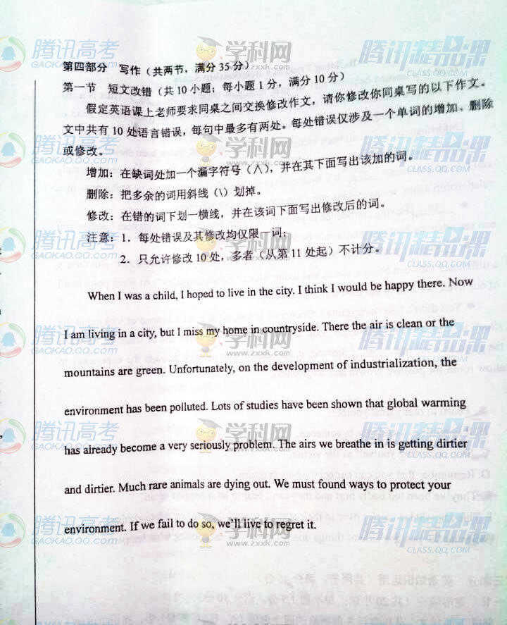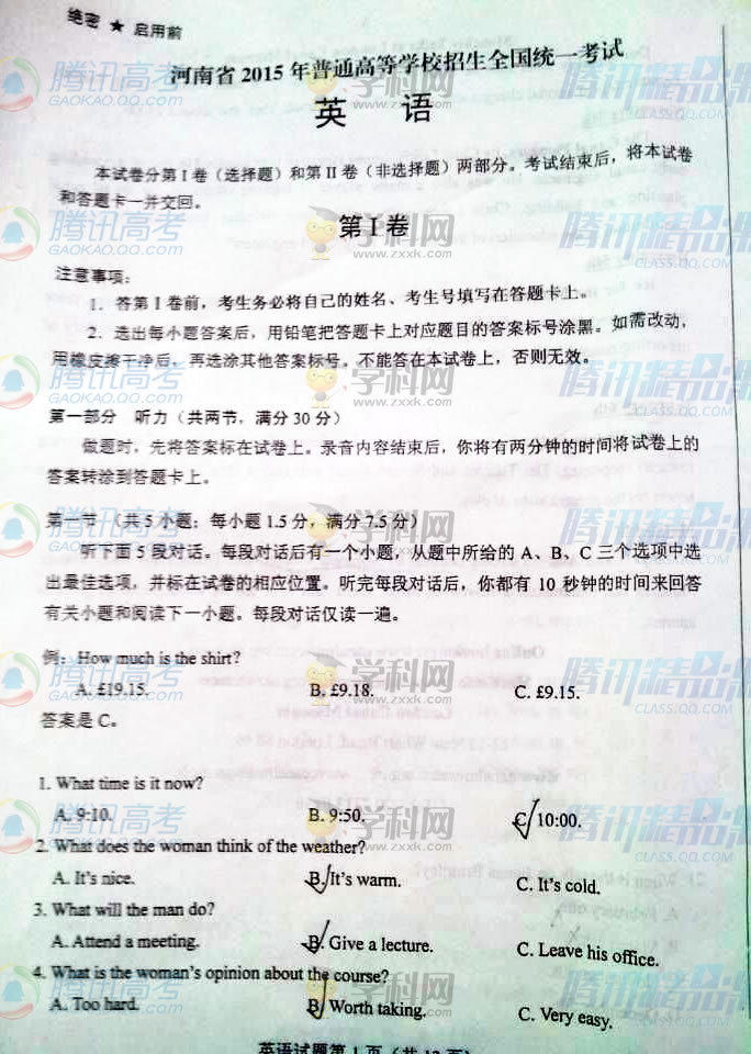 2015年河北高考英語(yǔ)試題(騰訊版)