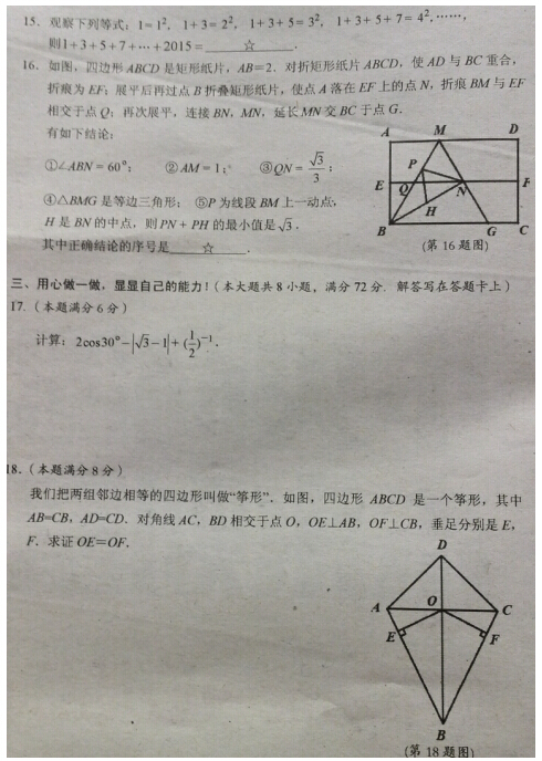 2015年湖北孝感中考數(shù)學(xué)試卷及答案(完整)