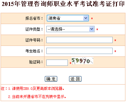 點擊進入:2015年湖南管理咨詢師準考證打印入口(已開通)