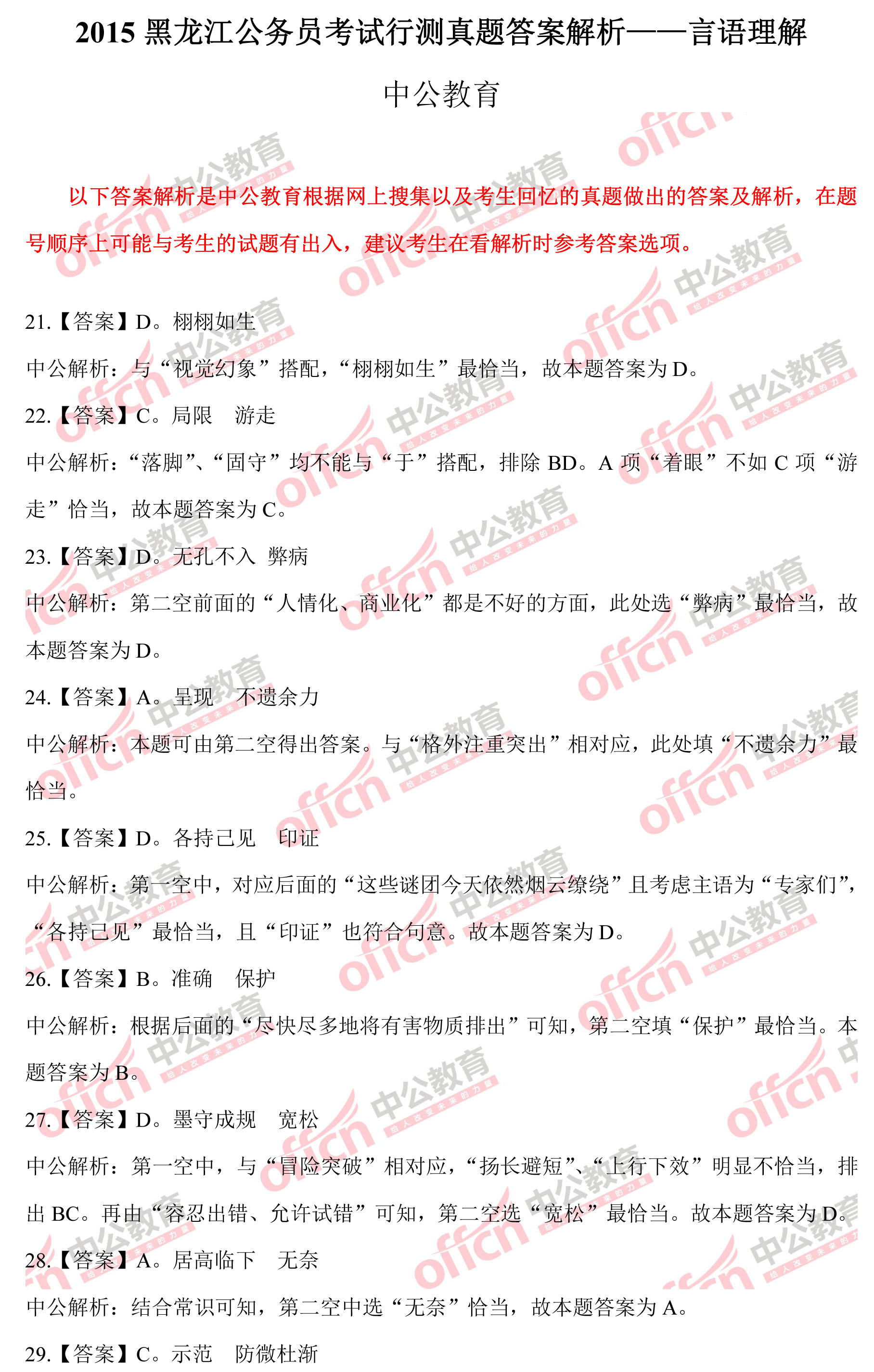2015黑龍江公務(wù)員行測(cè)真題解析(言語(yǔ)理解)