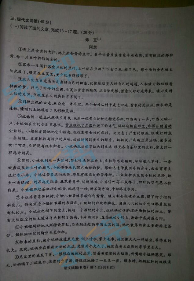 2015年重慶雙橋中考語文試題B卷(已公布)