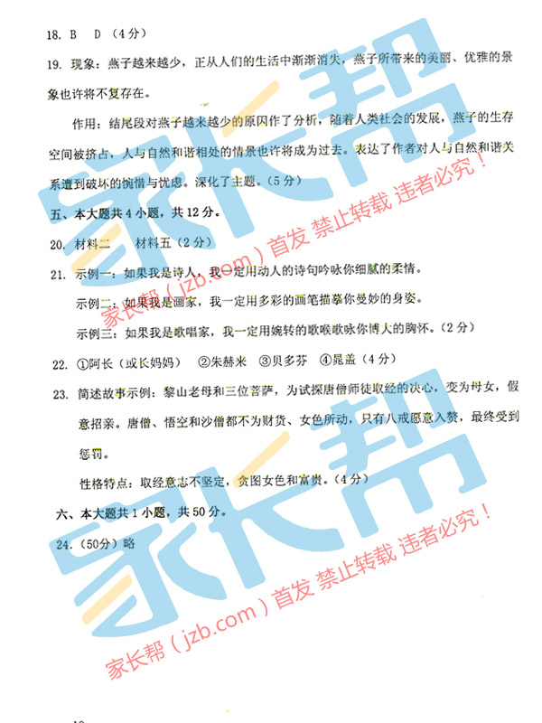 2015年天津中考語文答案