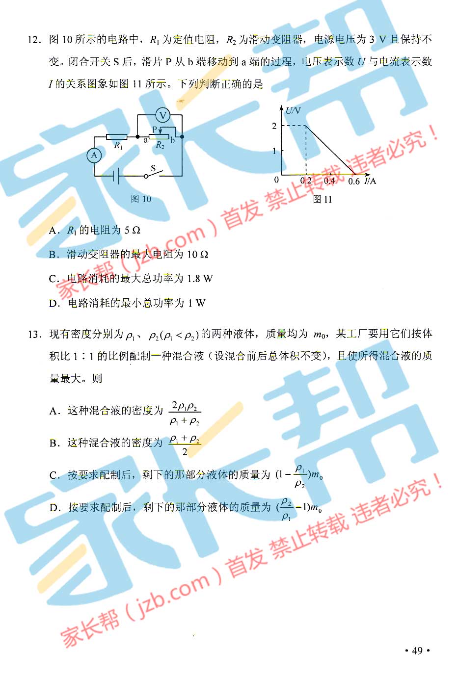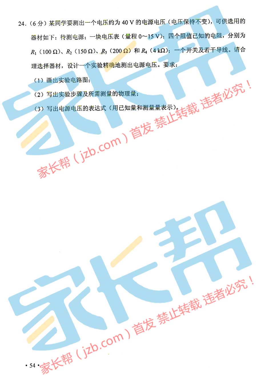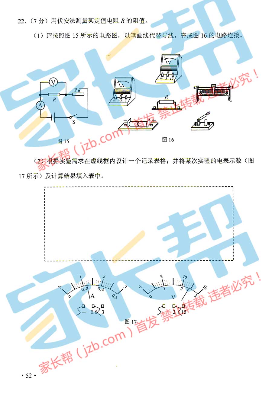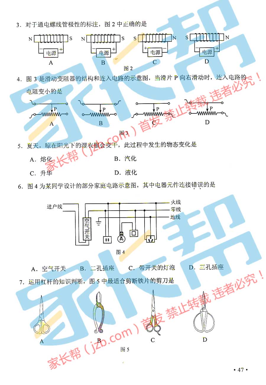 2015年天津塘沽中考物理試題(已公布)