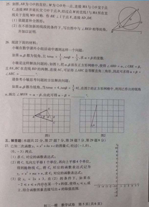 2015年北京西城區(qū)中考一模數(shù)學(xué)試題