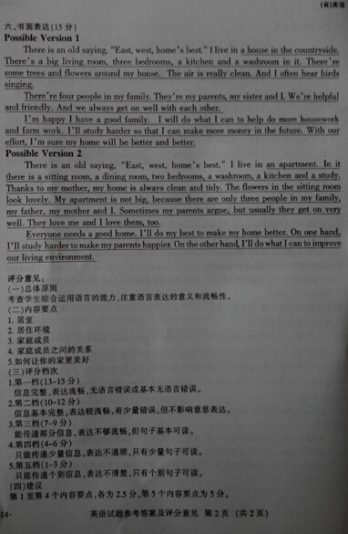 2015年江西鷹潭中考英語(yǔ)答案(已公布)