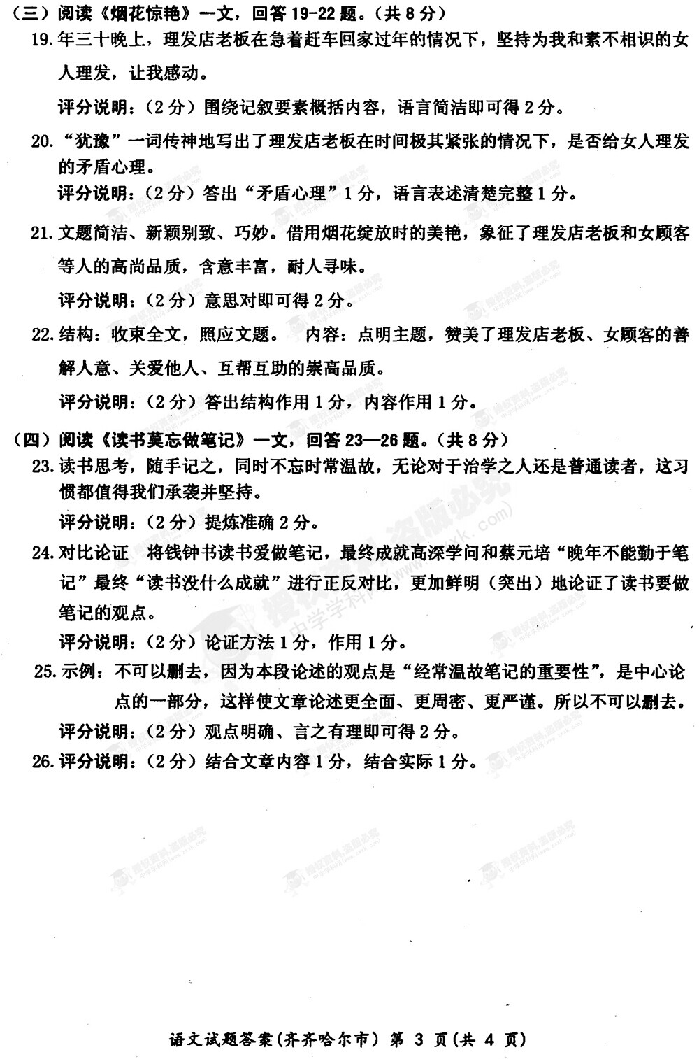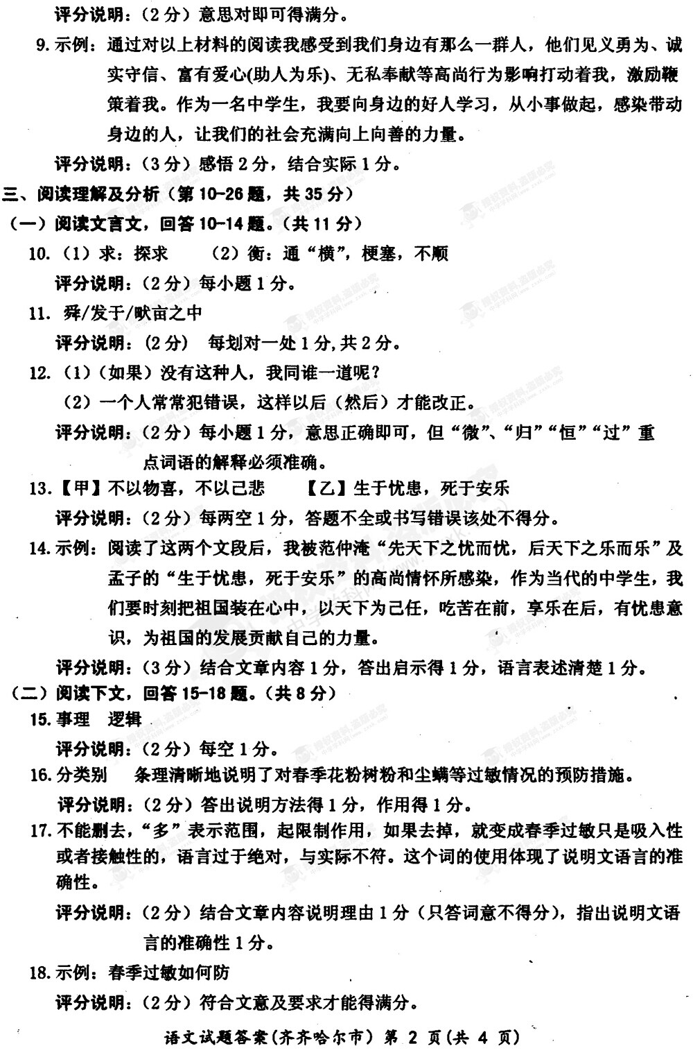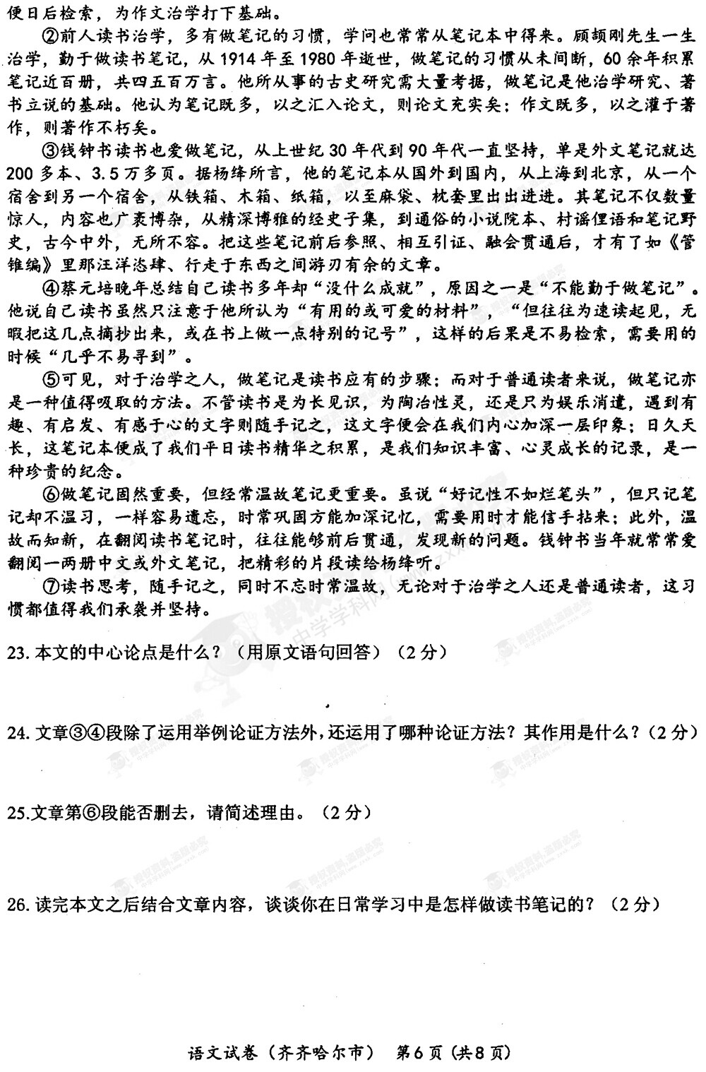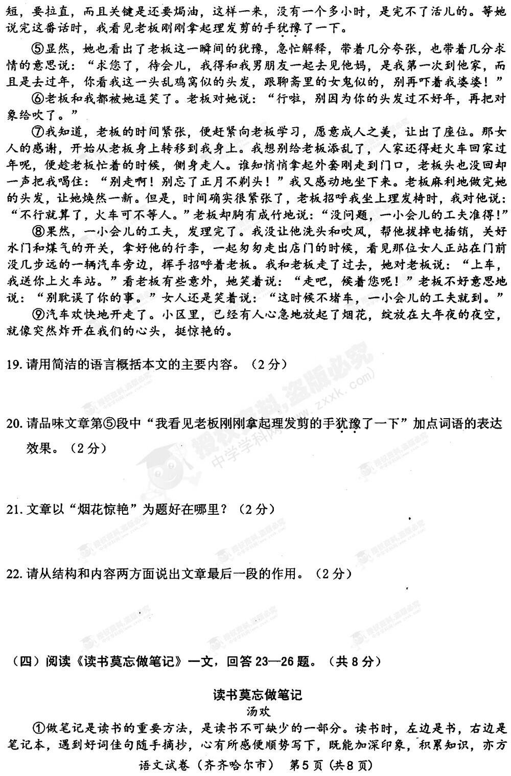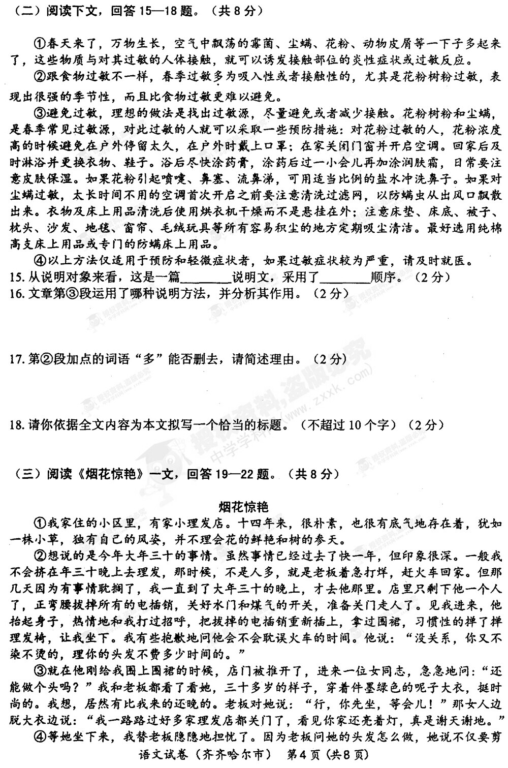 2015年黑龍江黑河中考語文試題及答案(已公布)