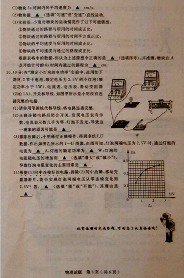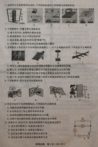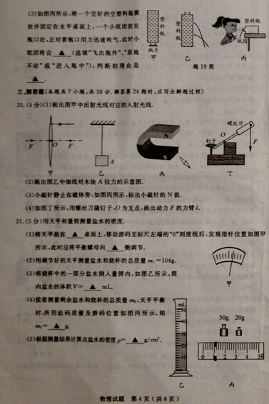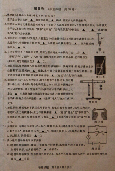 2015年江蘇淮安中考物理試卷及答案(已公布)
