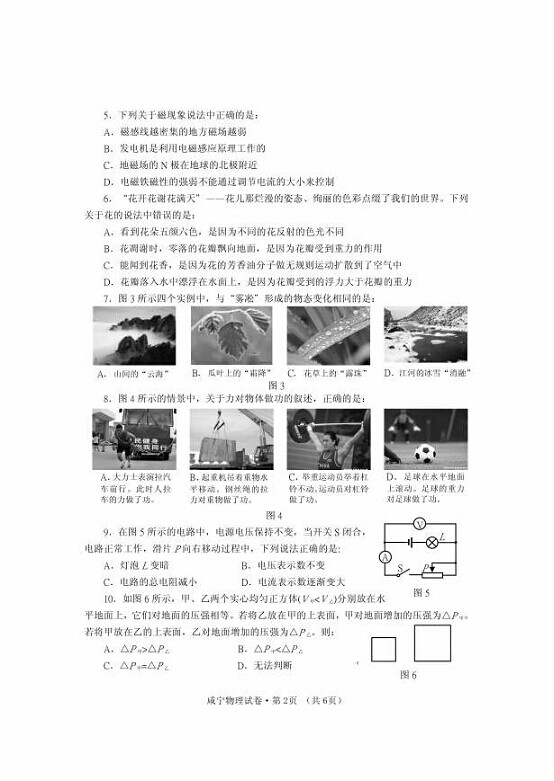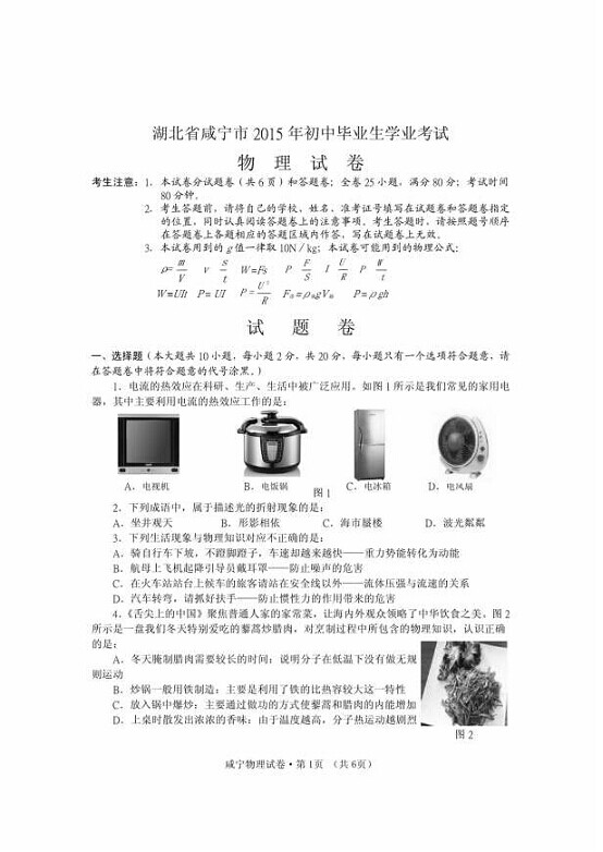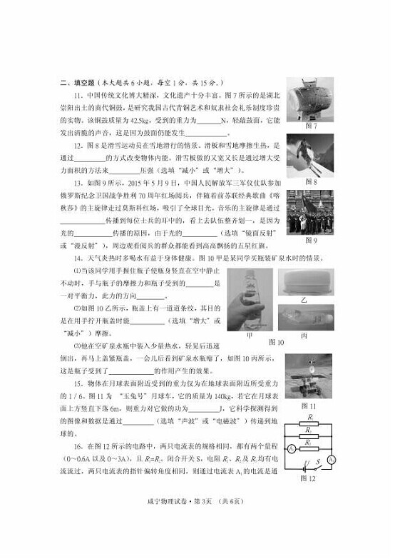 2015年湖北咸寧中考物理試卷及答案(完整)