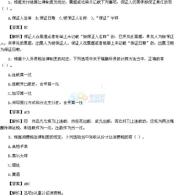 2015會計職稱考試答案及解析:初級經(jīng)濟(jì)法基礎(chǔ)(5.18)