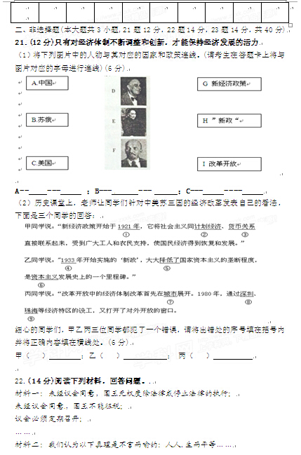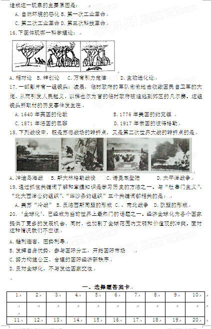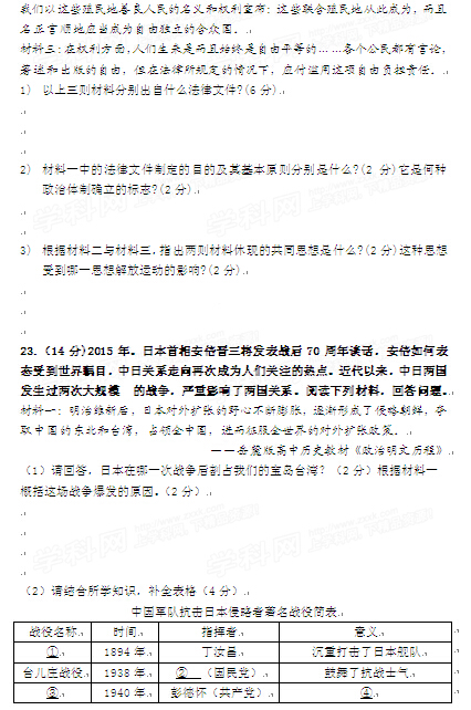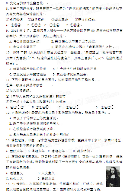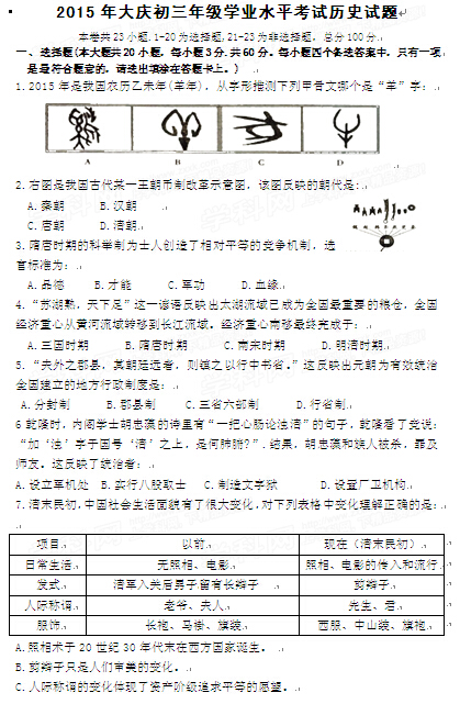 2015年黑龍江大慶中考?xì)v史試題及答案(已公布)