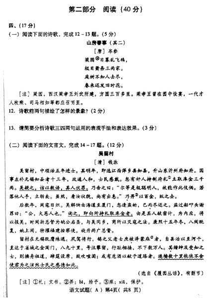 2015年山東濰坊中考語文答案A卷