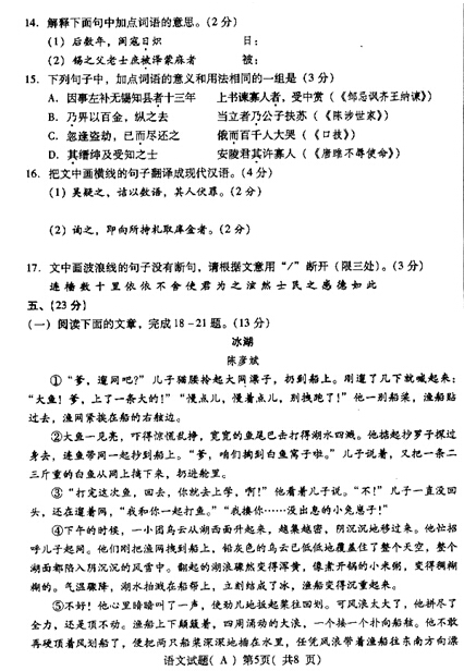 2015年山東濰坊中考語文真題及答案A卷(完整)