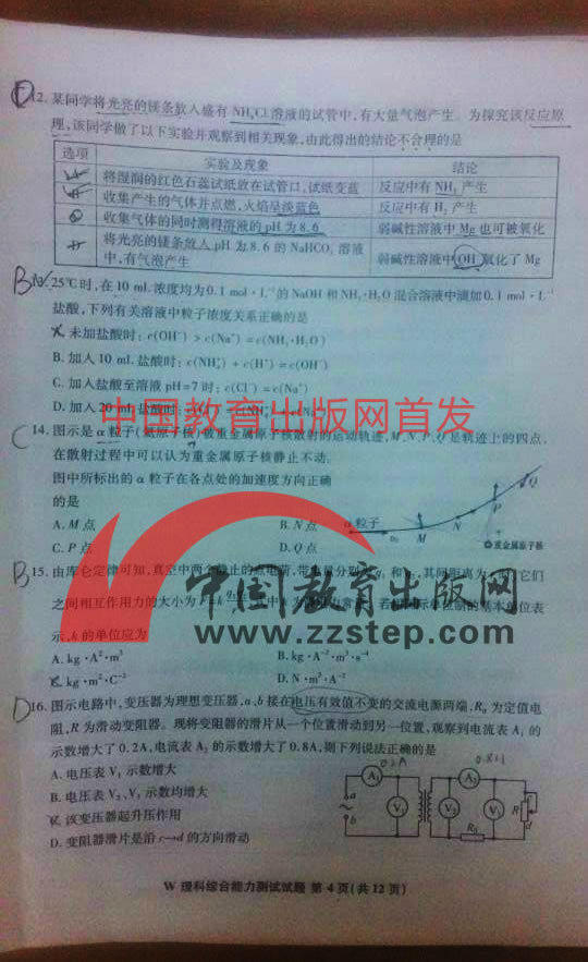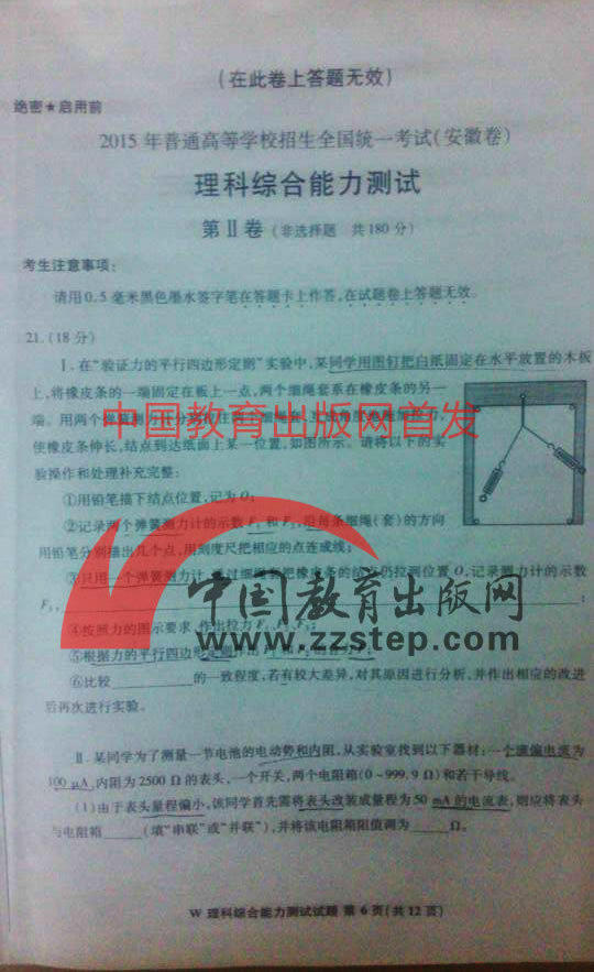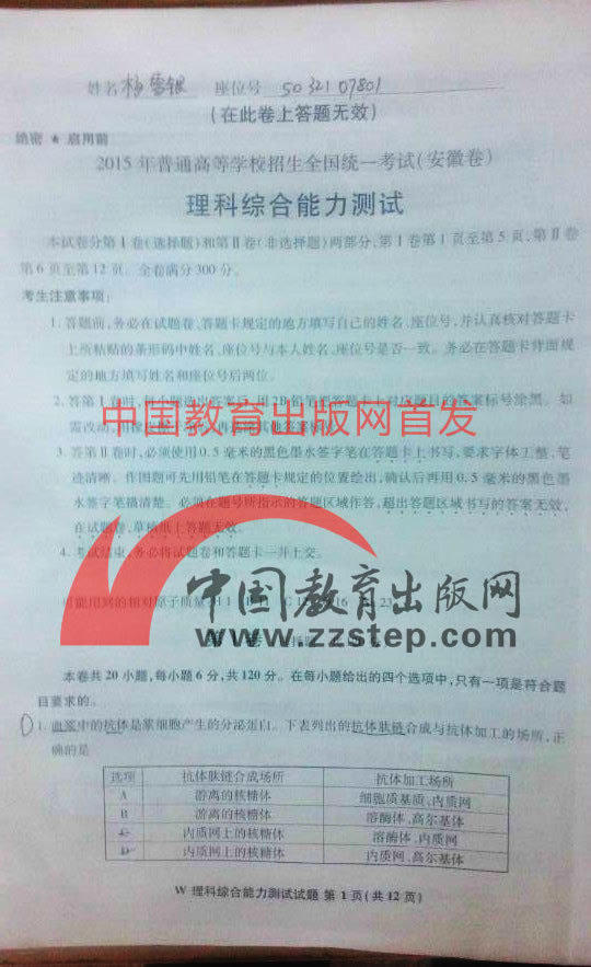 2015年安徽高考理綜試卷(完整版)