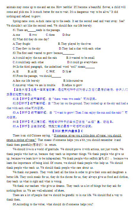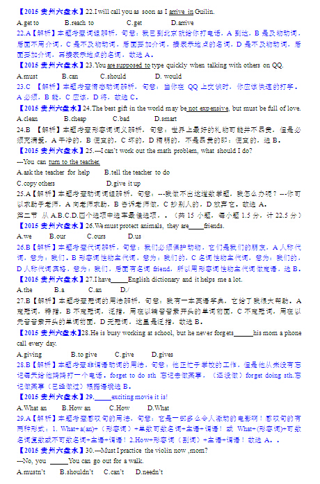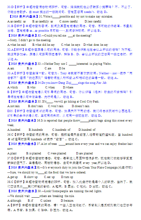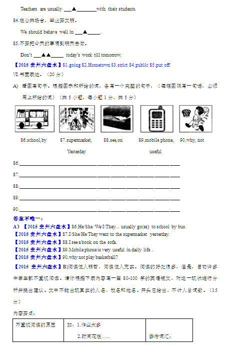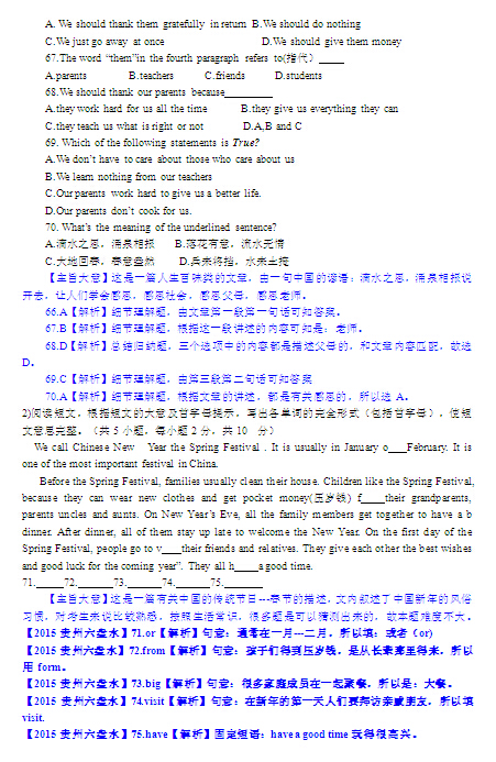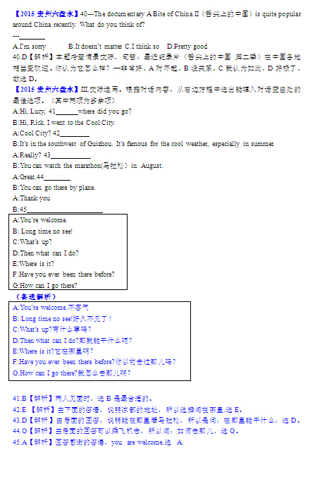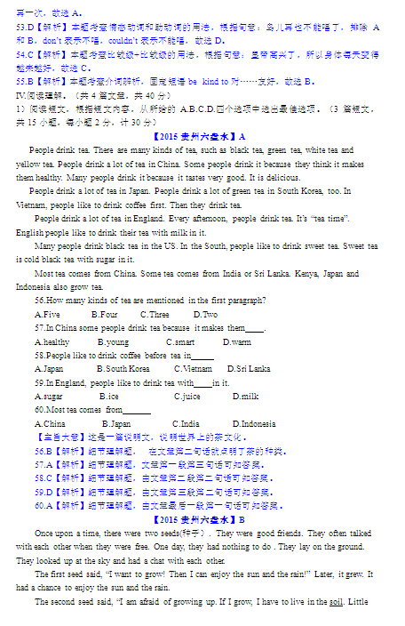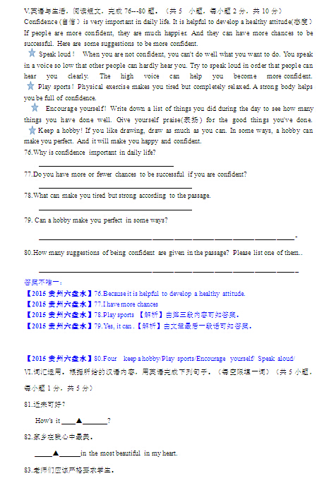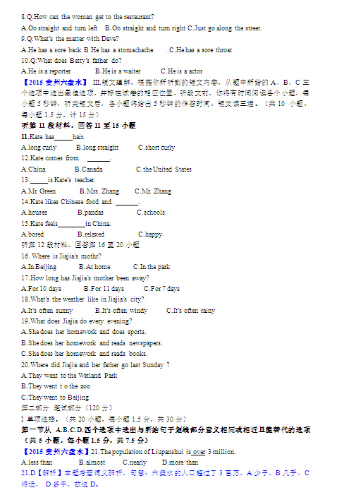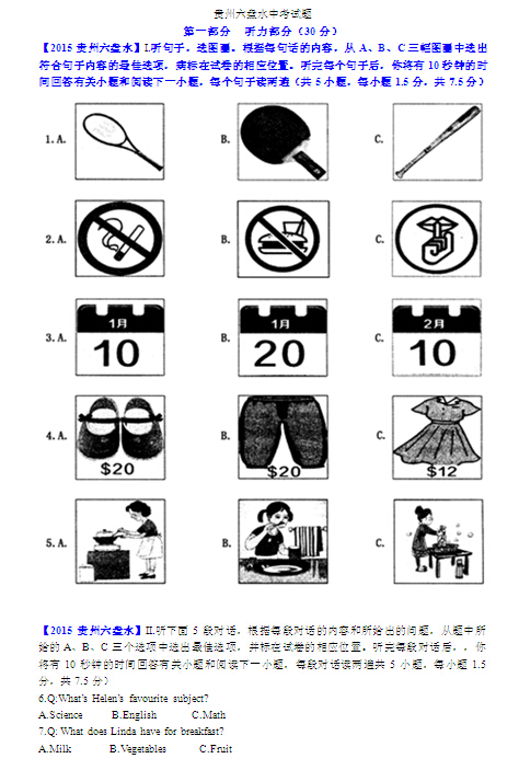 2015年貴州六盤水中考英語試題及答案(已公布)