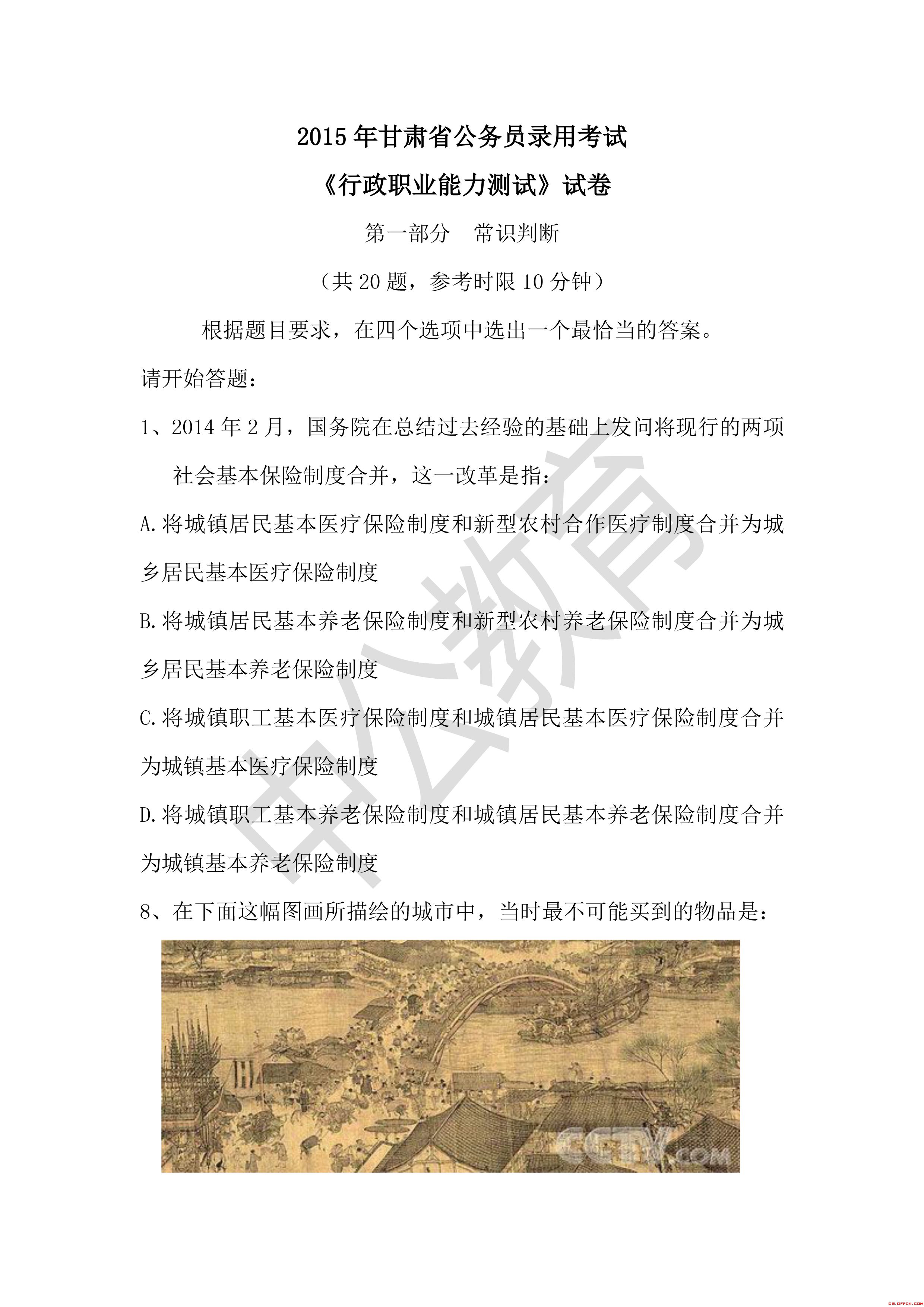 2015年甘肅公務(wù)員考試真題 |