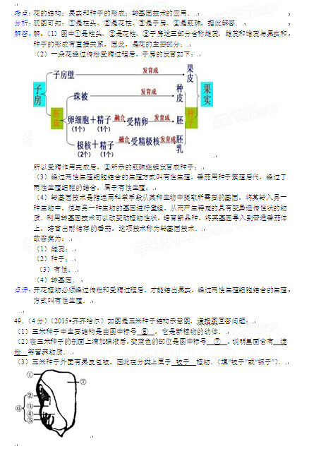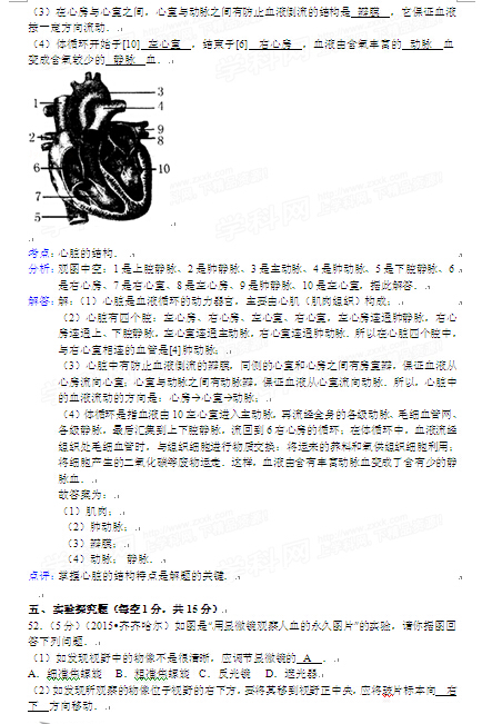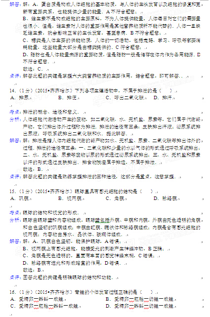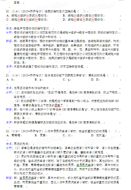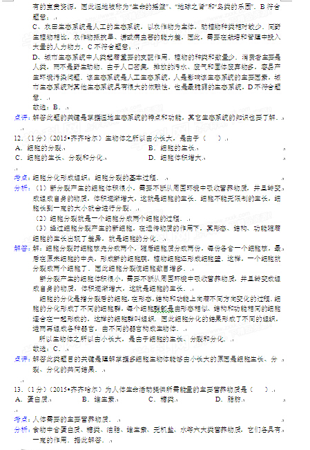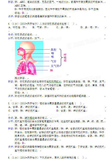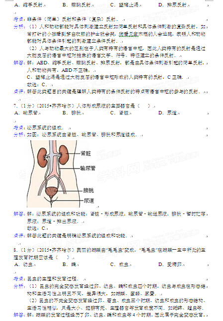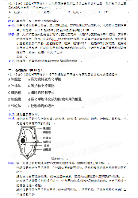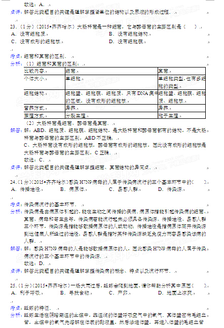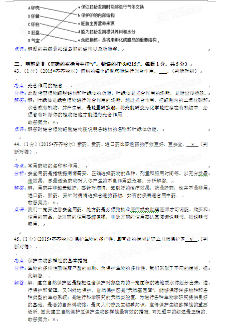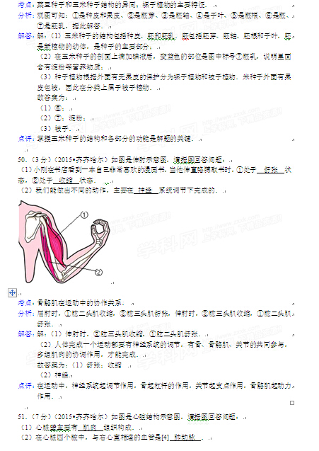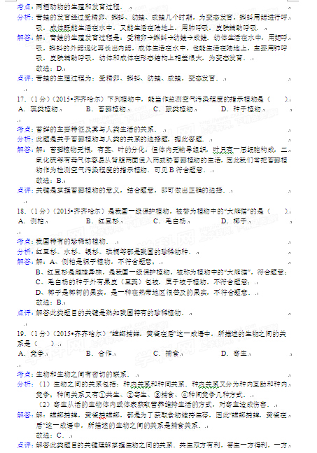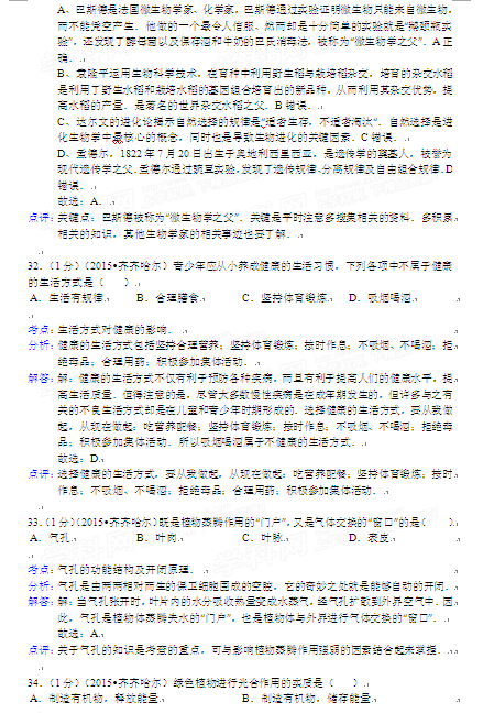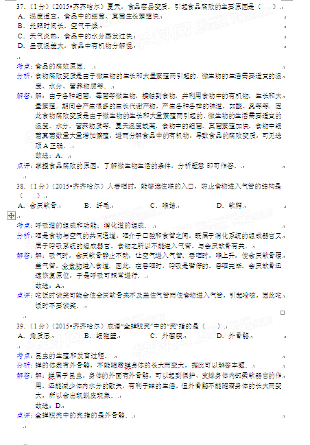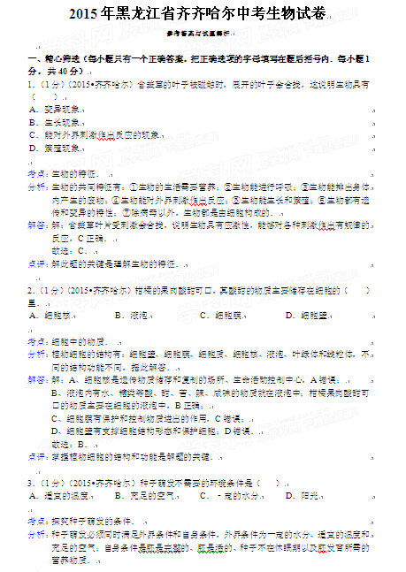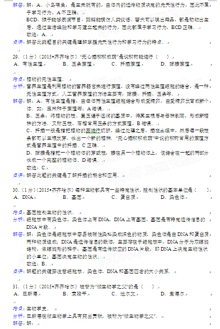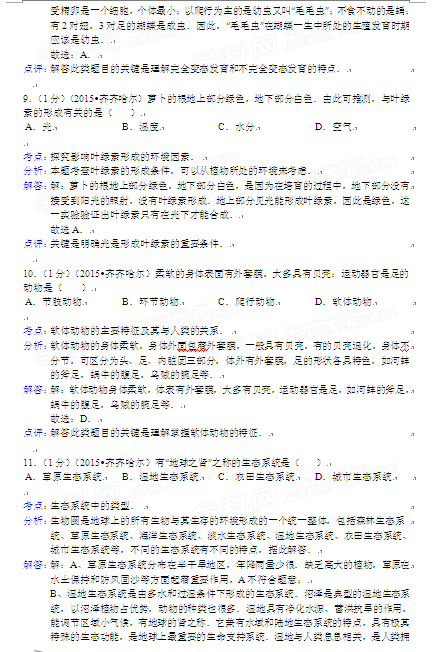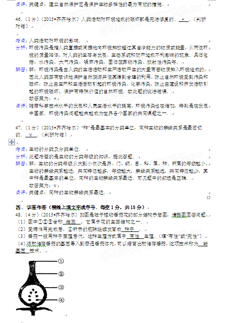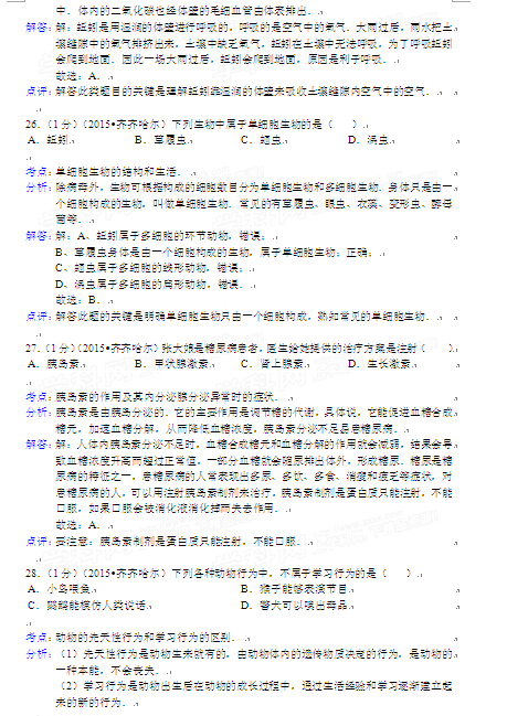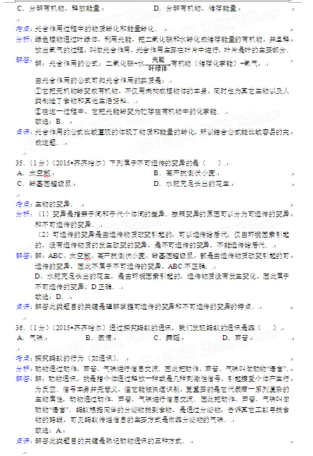 2015年黑龍江黑河中考生物試卷及答案(完整版)